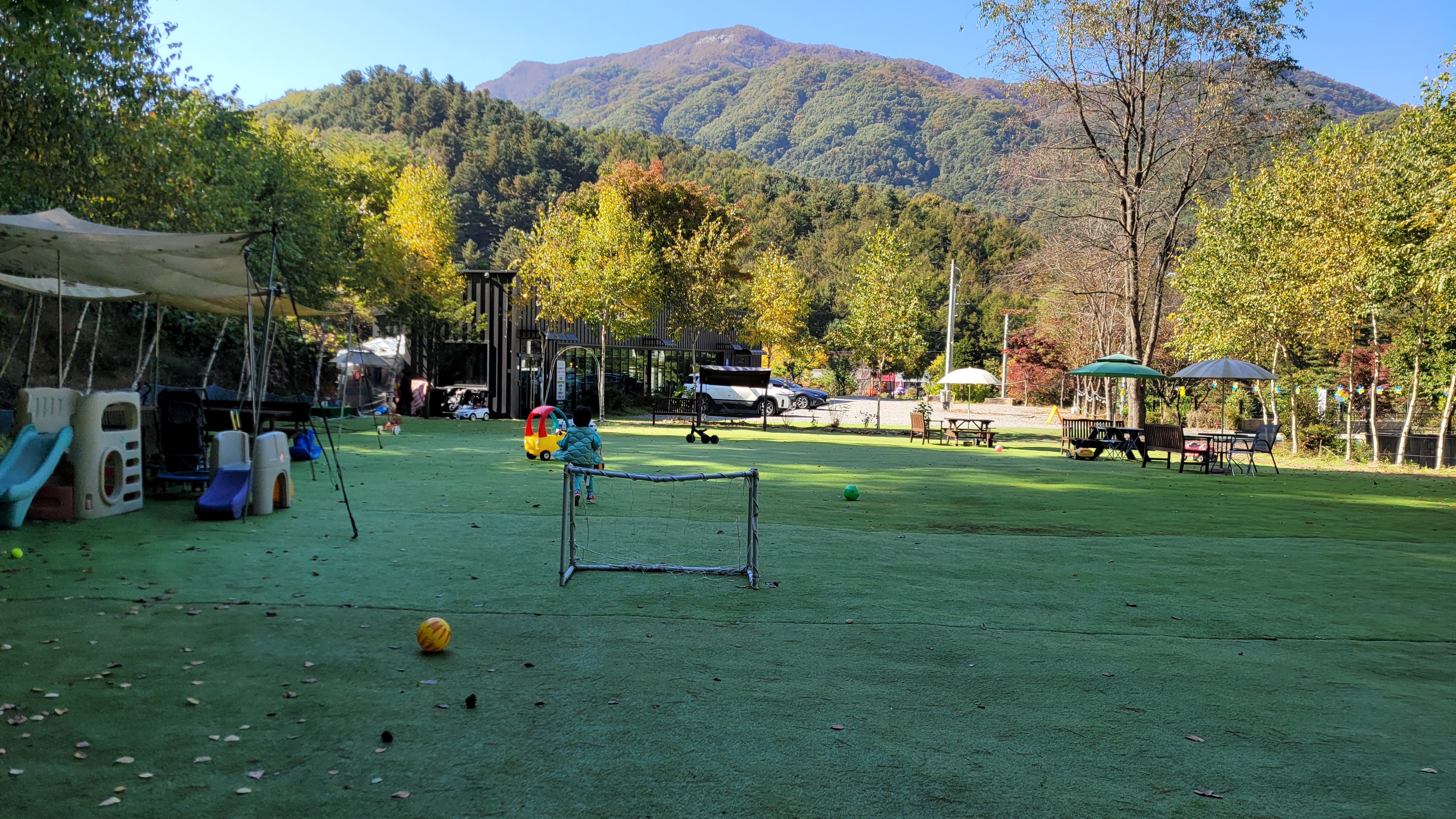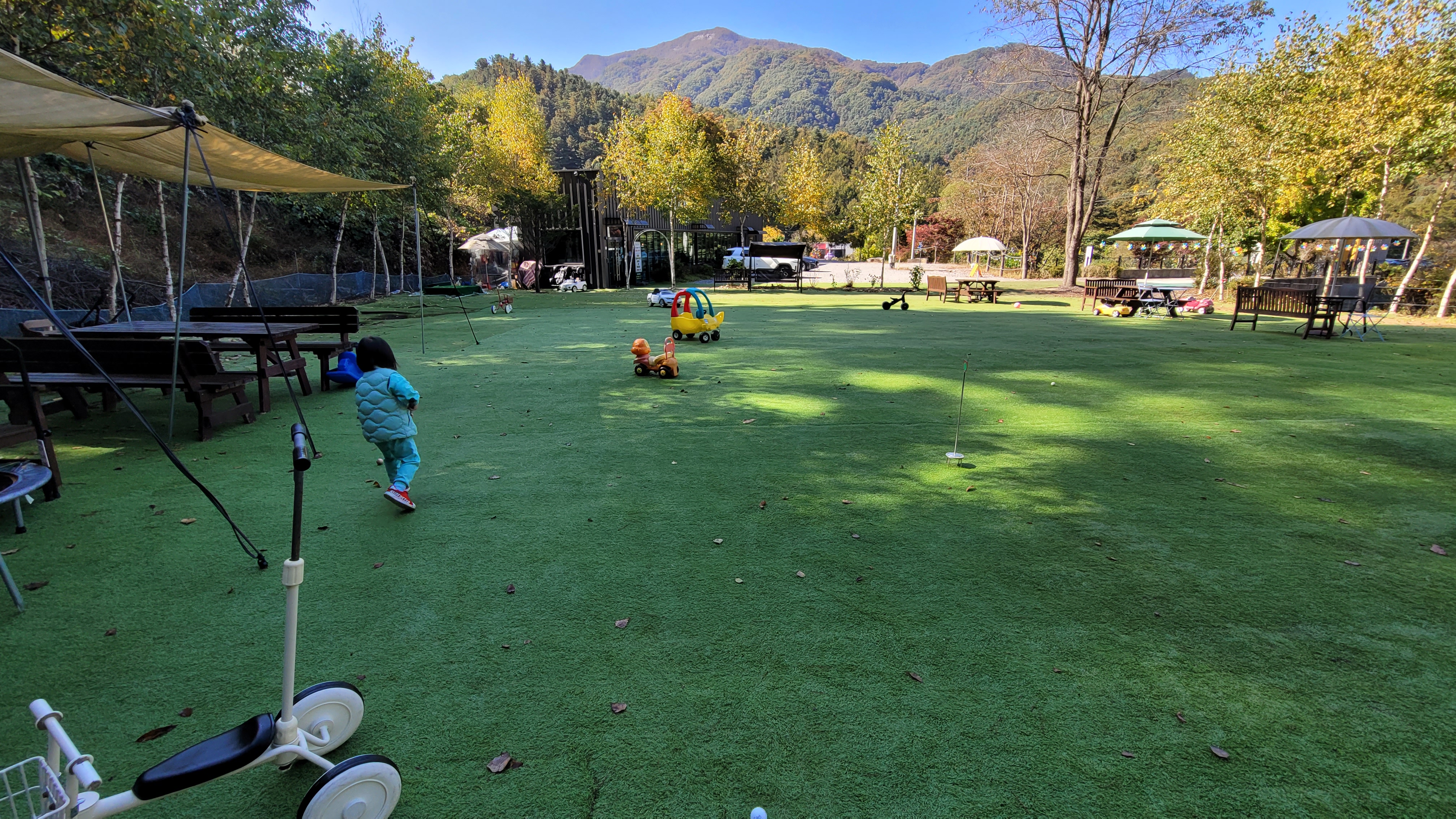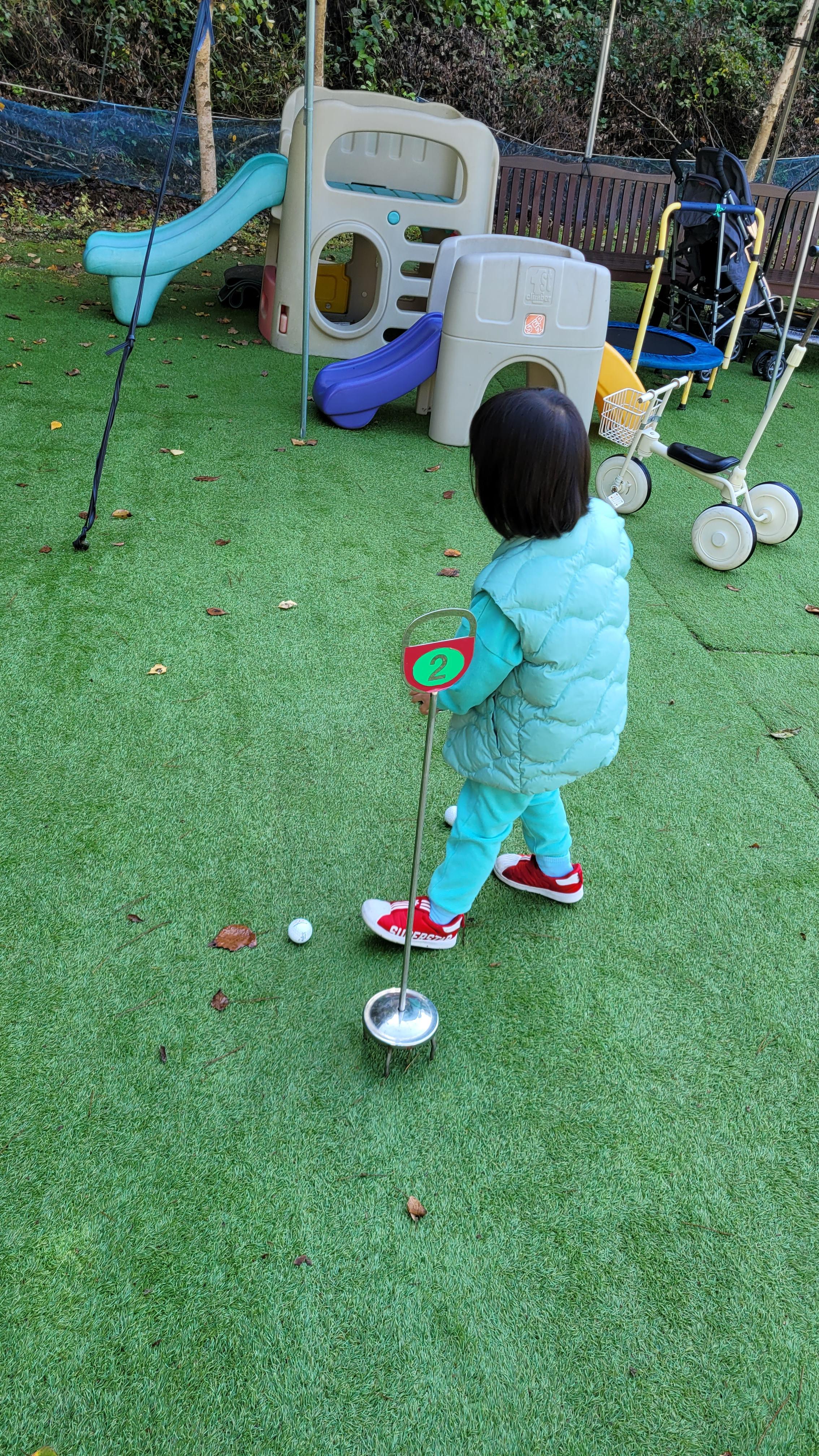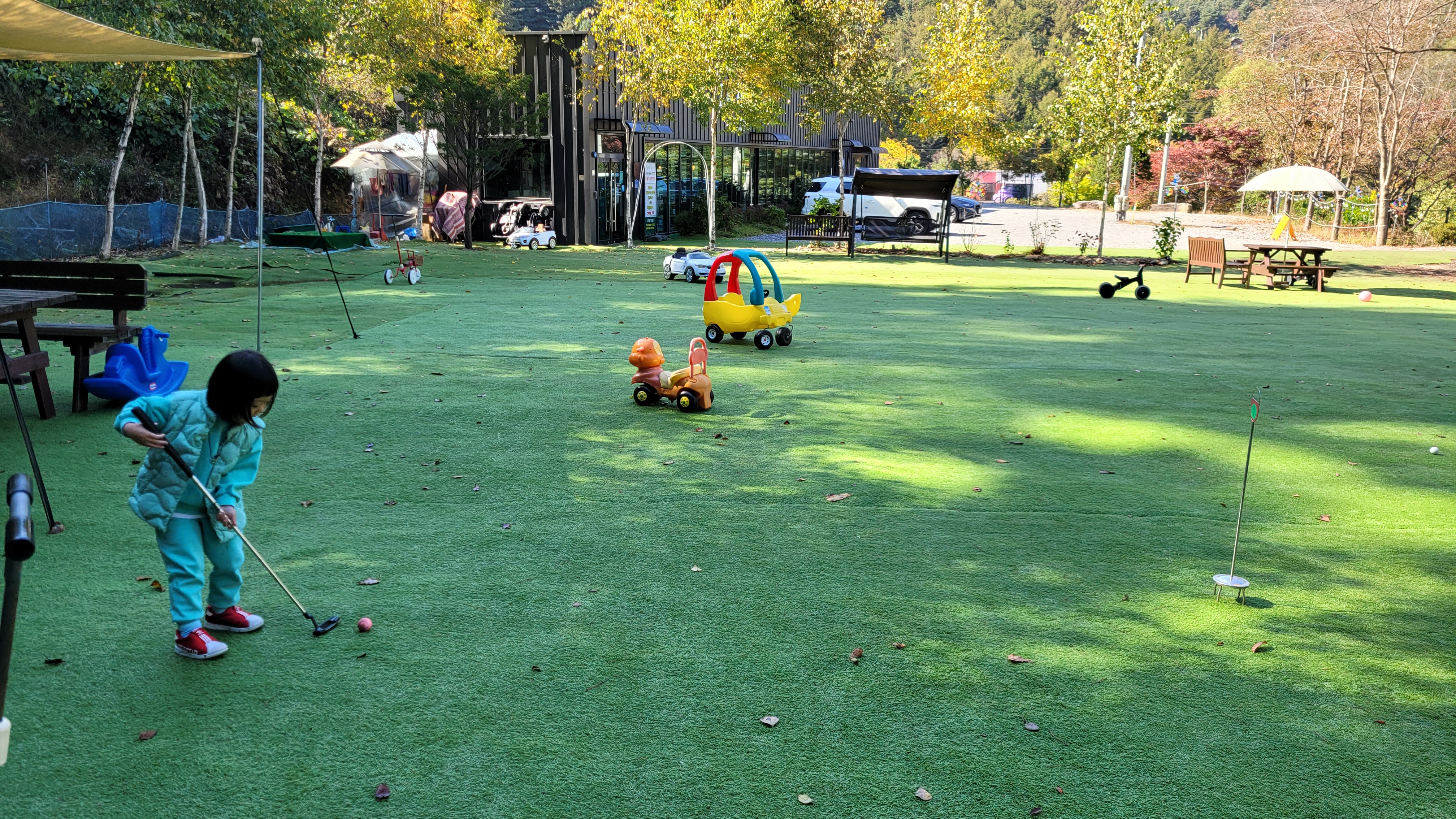 골프? 까진 아닌데 비슷하게 놀수있는것도 있었고, 축구도 할 수 있게 되어있고, 작은 미끄럼틀과 자전거등이 배치되어 있었어요