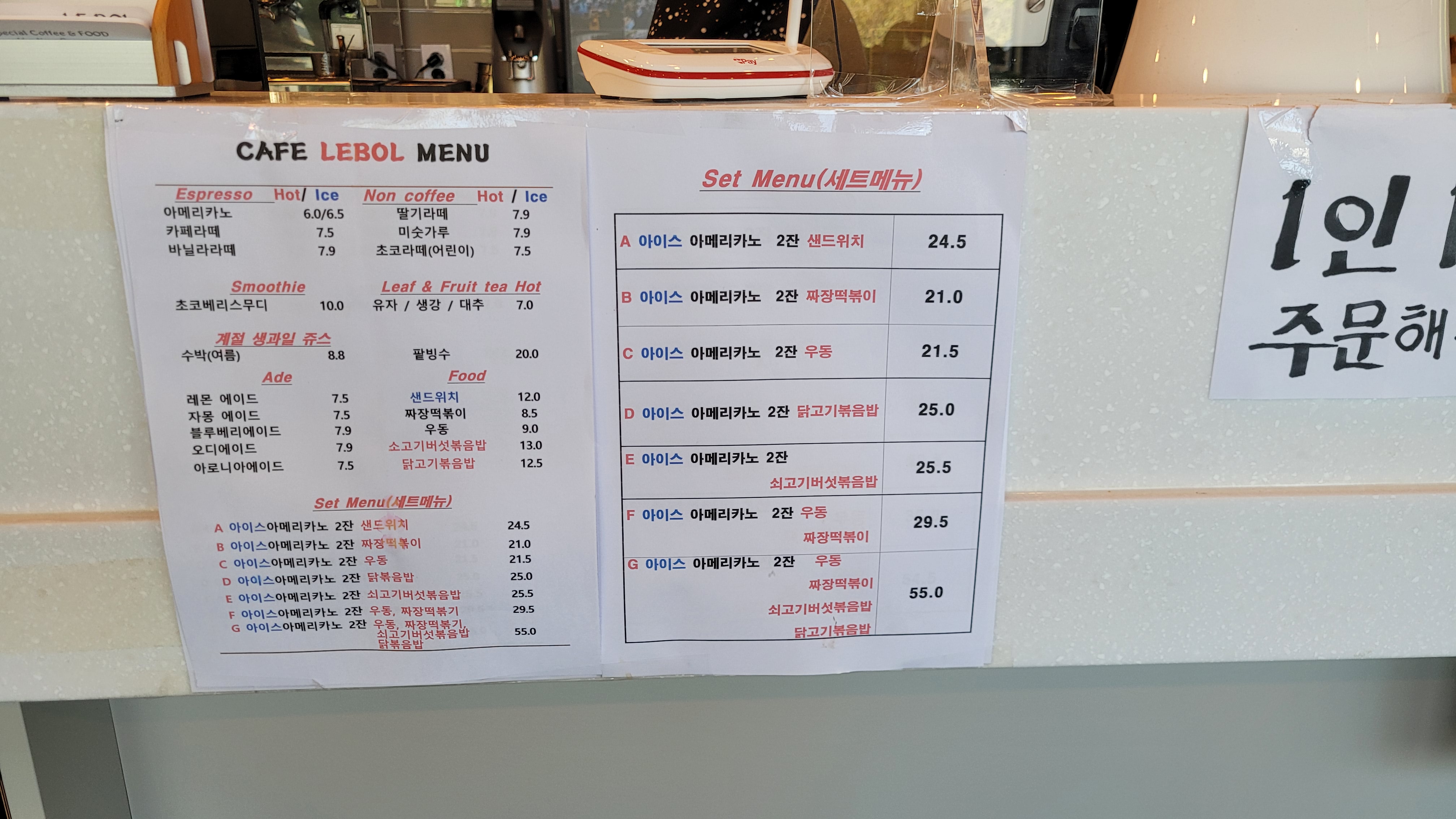#카페르볼메뉴 에요