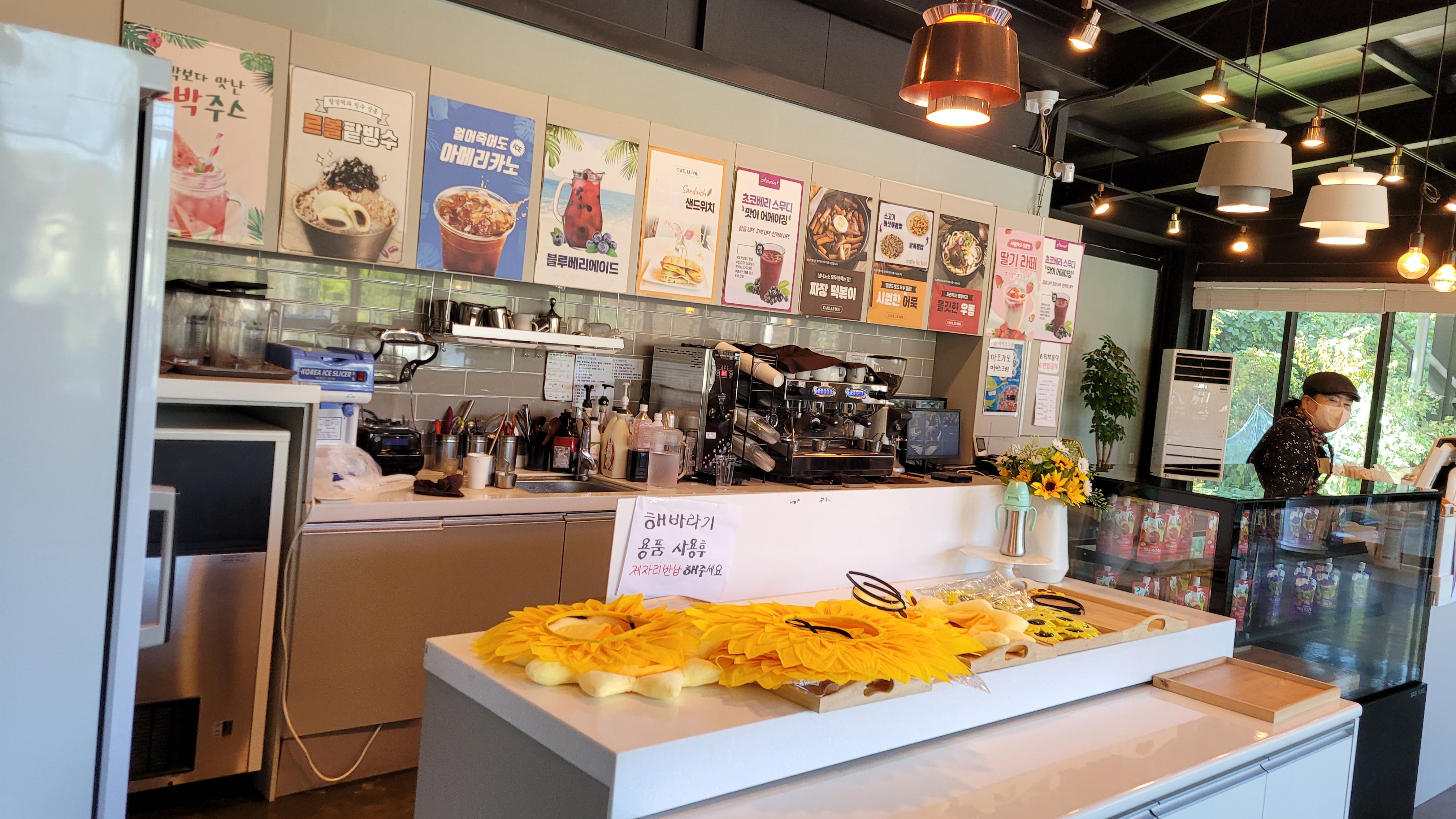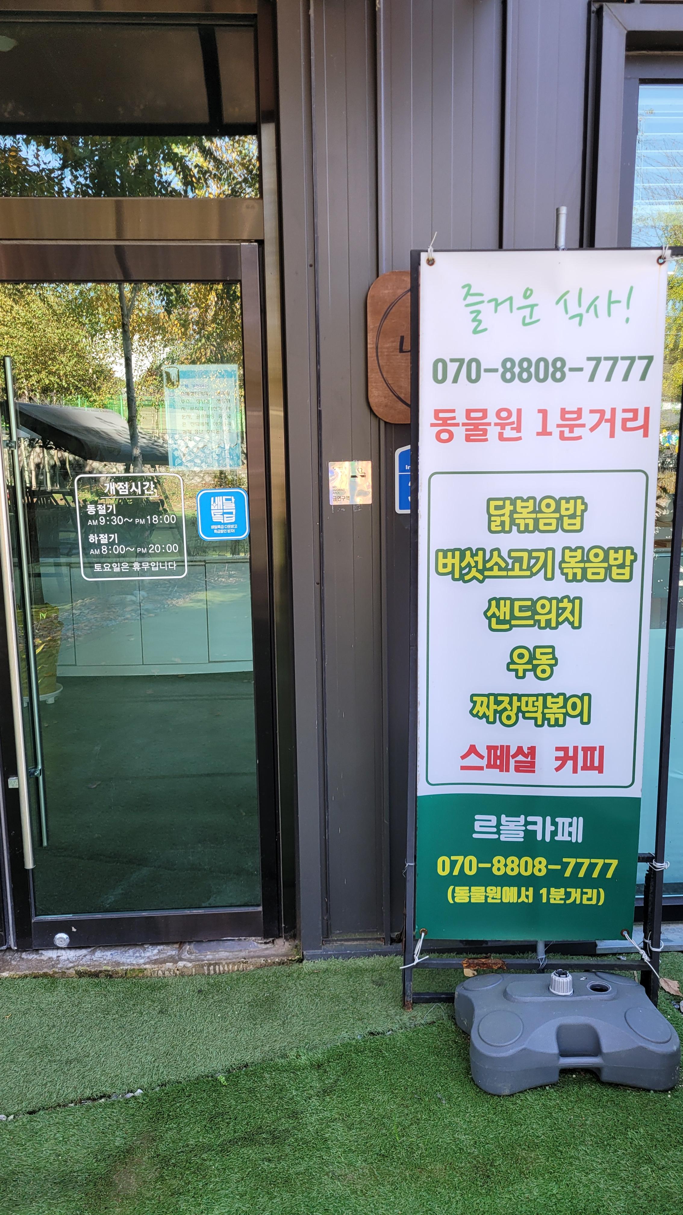 그래서 밥먹을 시간도 다가오고 하니까 간단히 식사라도 하자고 음식점을 가려는데, 아침고요가족동물원 바로 옆에 카페가 있더라구요.