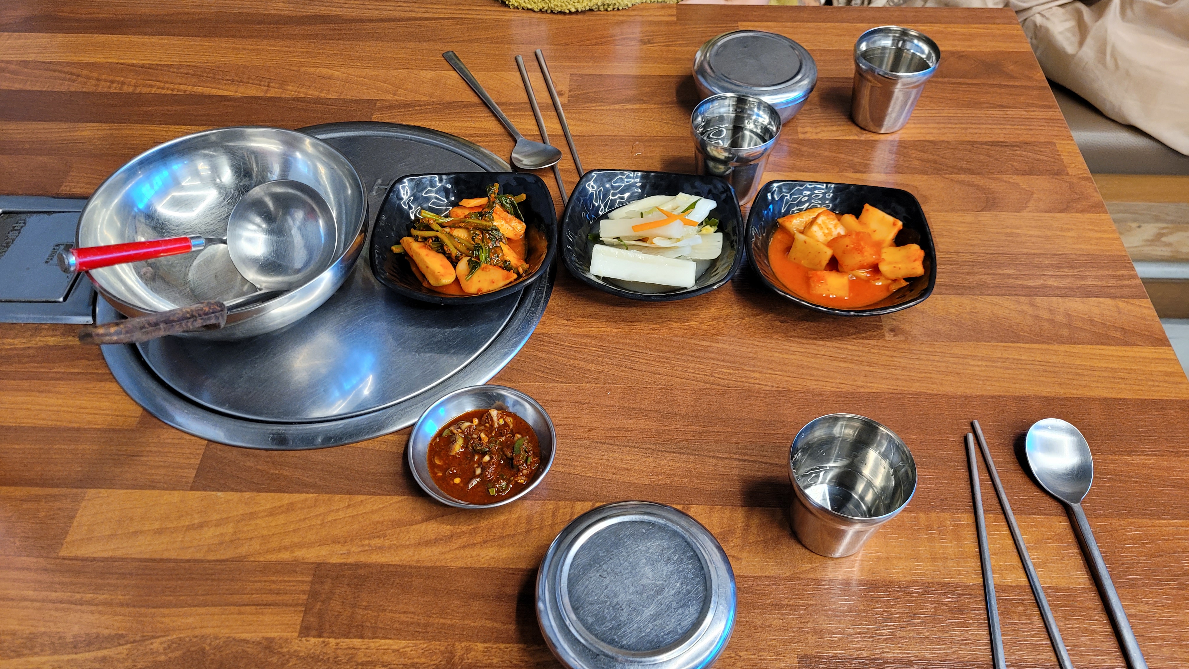 기본 밑반찬은 열무김치, 백김치, 깍두기 였어요.