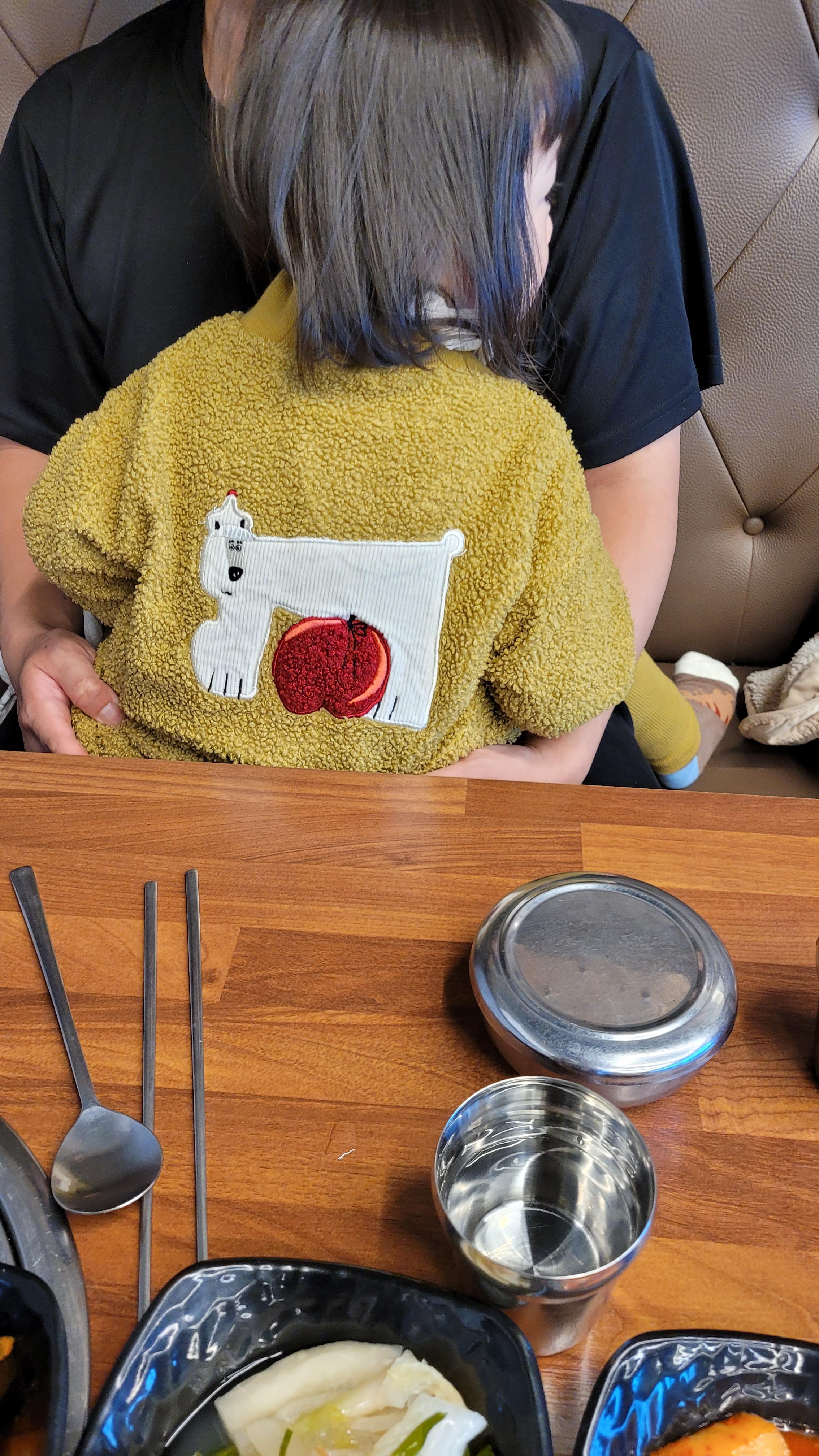 돼둥이가 잠들고 깨서 안겨서 식당으로 입장중 ㅋㅋㅋ